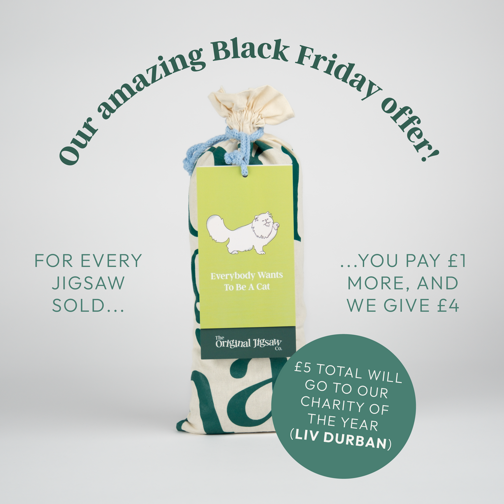 We aim to make our puzzles as sustainable as possible, and all our jigsaws are made here in the UK on a luxury 1.7mm board made from 100% FSC certified recycled board.